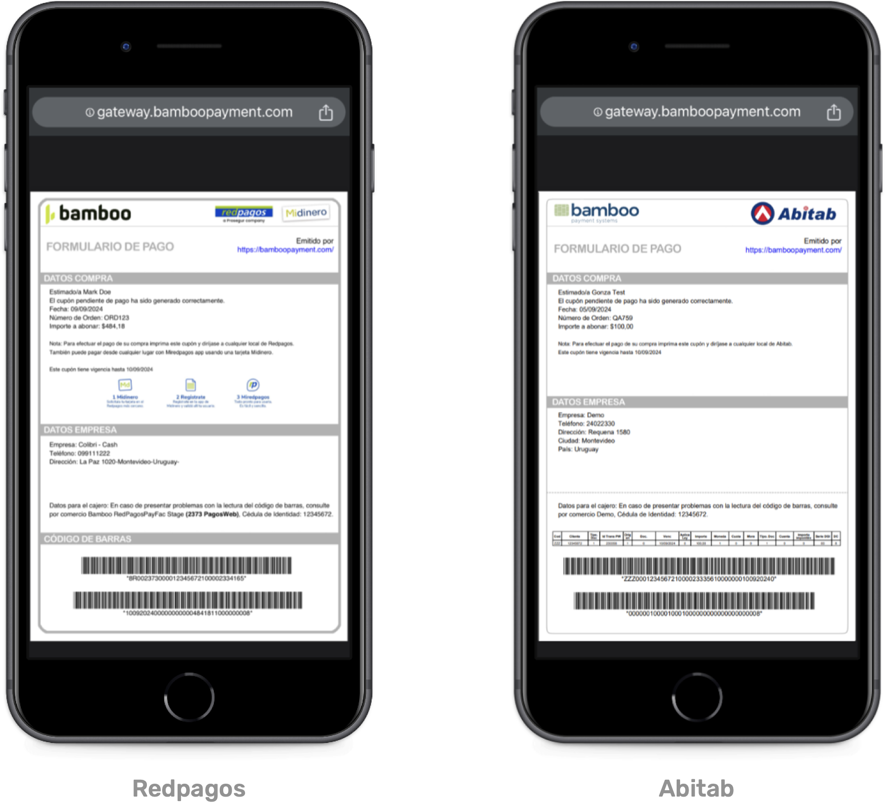 The payer must present this coupon at the selected payment office (Abitab or RedPagos) to complete the transaction.