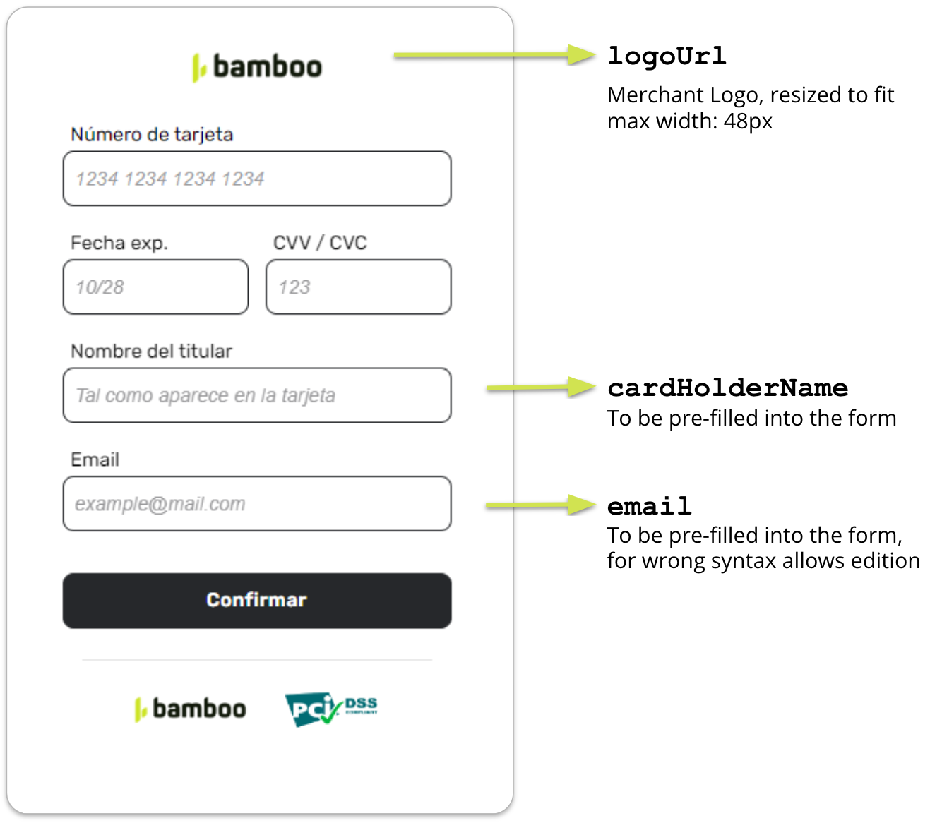 You can customize the tokenization form with your logo and preferred language, besides pre-fill data already provided by your customer, or restrict the tokenization to specific cards.