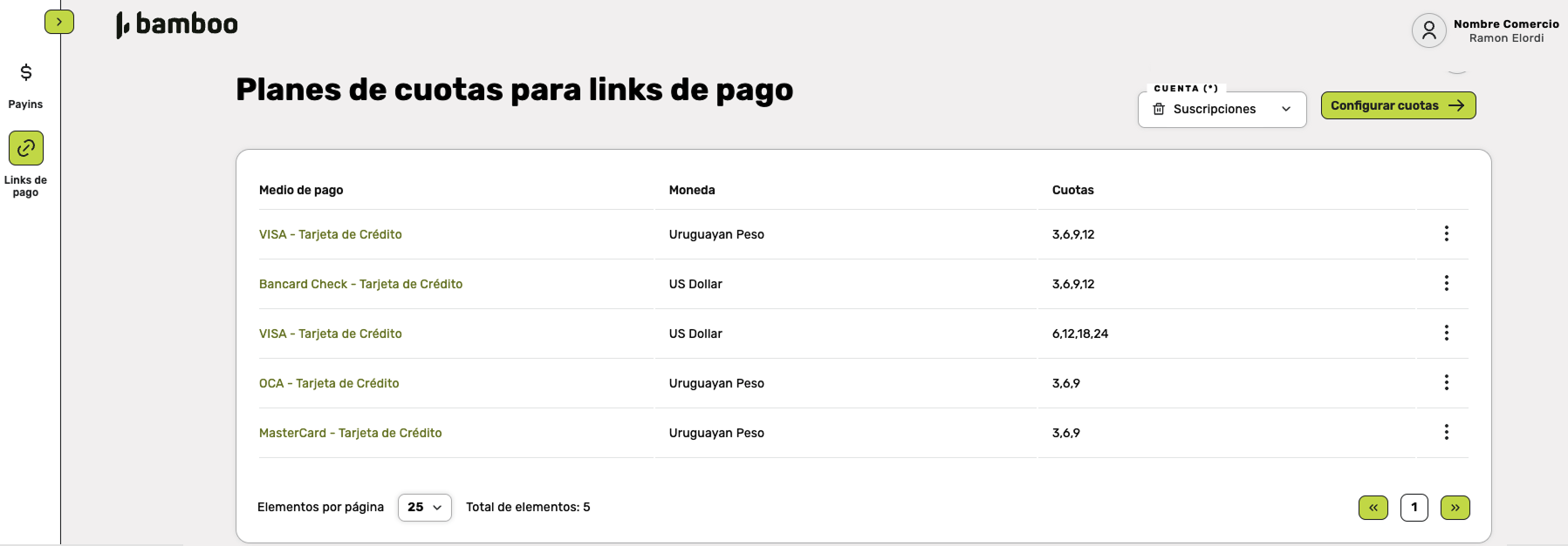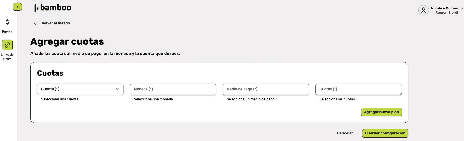 The Installment Plans section allows you to configure the installment payment options that will be available to a merchant’s customers, based on payment method and currency.