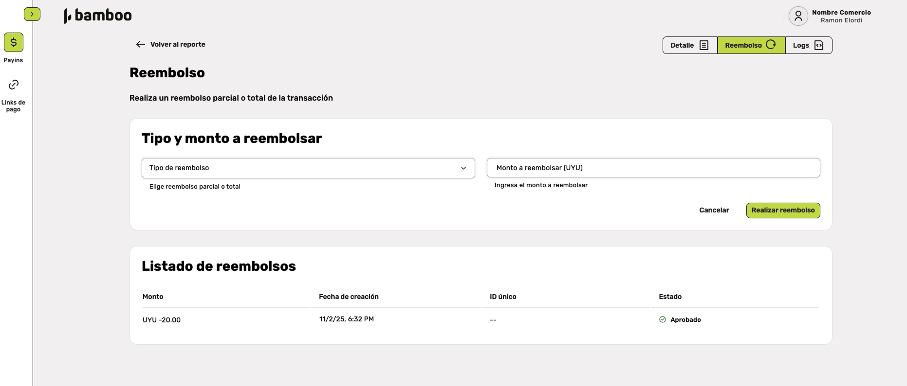 - The currency will be shown in the same denomination as the original transaction (e.g., UYU)