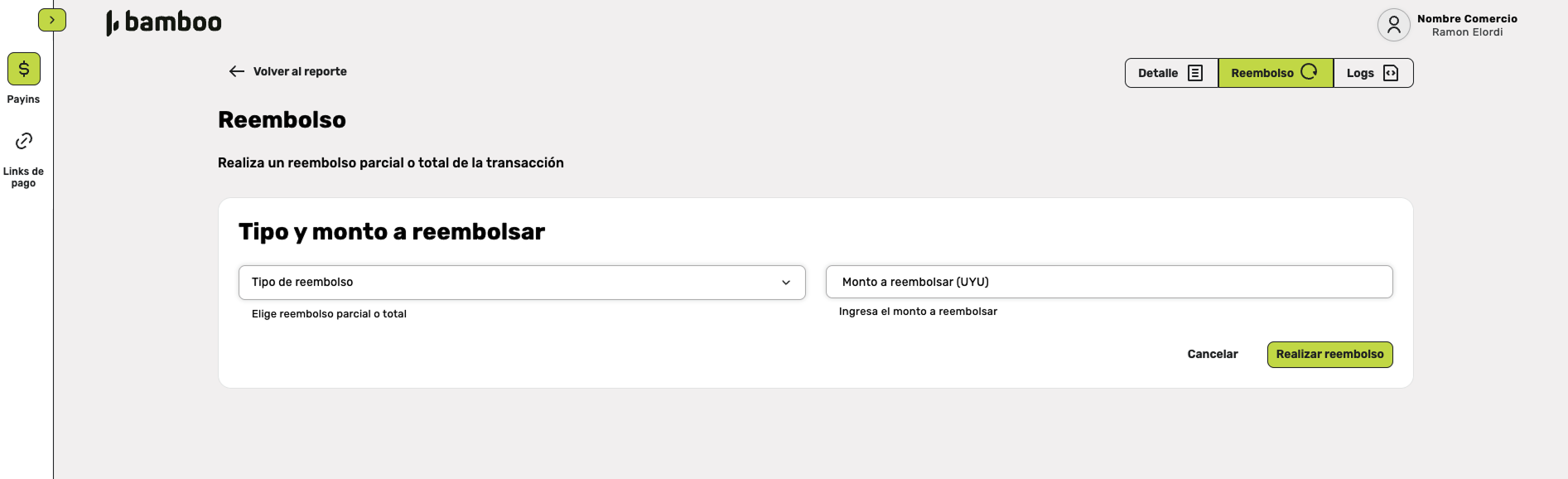 - Enter the specific amount to refund (only for partial refunds)