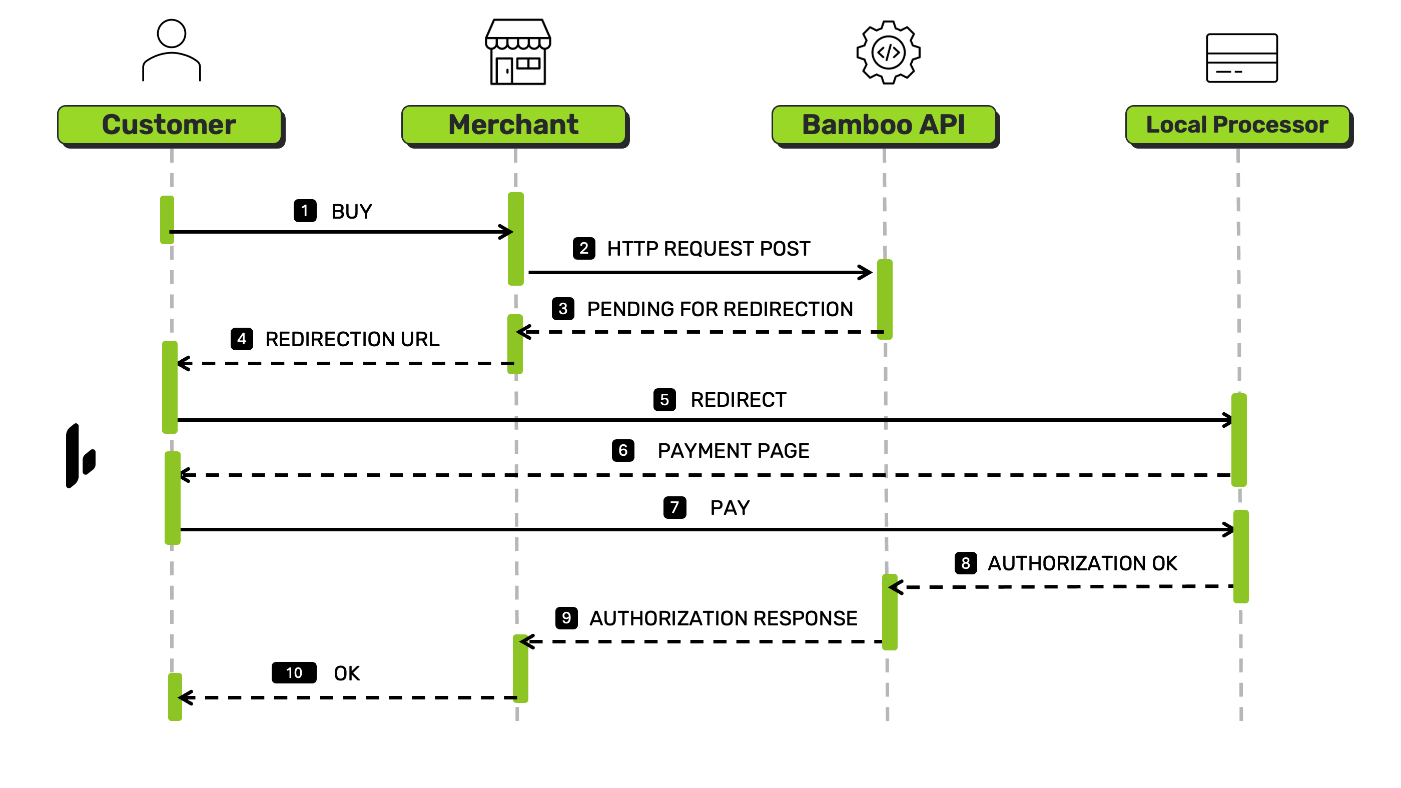 - HTTP POST — The merchant sends the purchase request to Bamboo.