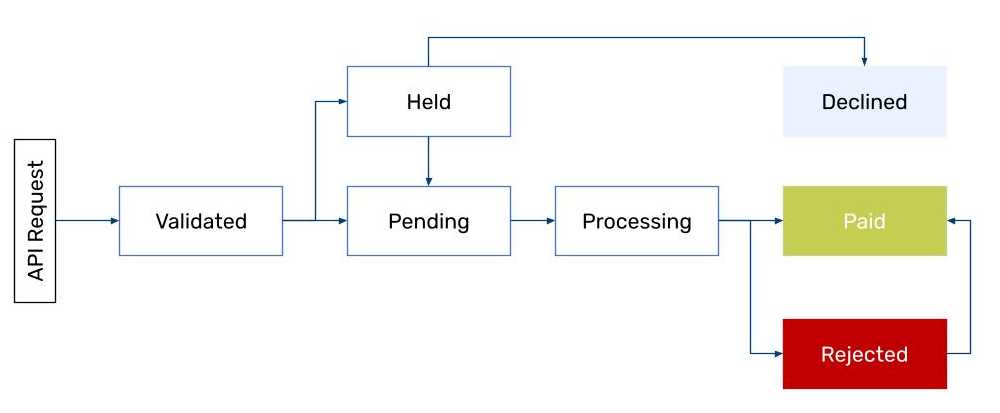 HELD | 7 | The payout is temporarily on hold for manual review following the validations performed in the previous step. |